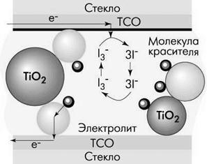 фотоэлектроду, где восстанавливает окисленный краситель.