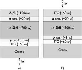 на основе a-Si:H с шириной оптической щели 1,8 эВ. Для серединного элемента в