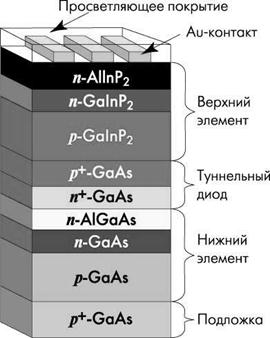 Рис.14. Принцип построения многопереходного солнечного