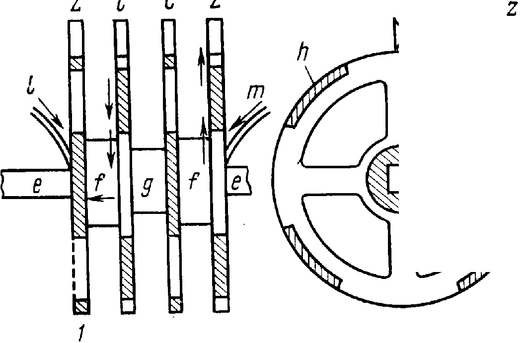 Новой, чрезвычайно важной, технически целесообразной глубоко продуманной частью электродвигателя Якоби был коммутатор, созданный им специально для того, чтобы периодически изменять полярность подвижных электромагнитов. Технически эта идея была осуществлена так. Коммутатор, схема которого показана на рисунке 3, состоял из четырех медных колец 1-4, насажанных на рабочий вал электродвигателя. Кольца попарно соединялись медными трубками ff. на оси вала, закреплялись трубкой g из изолирующего материала и вращались вместе с валом. Каждое из колец, смещенных на 45° по отношению к предыдущему, имело 4 выреза, которые заполнялись вкладками из изолятора h. Поверхность колец была хорошо отполированной и ровной. По этой поверхности при вращении колец скользил контактный рычаг г, представлявший собой своеобразную щетку. Другой конец рычага опускался в чашечку со ртутью k, которая соединялась проводником с батареей. Металлические кольца были соединены с электромагнитами вращающегося диска. При его вращении металлические рычаги, попадая на непроводящие части колец, прерывали цепь, а при соприкосновении с металлом замыкали ее. Когда рычаг переходил с непроводящей части на металл, т. е. в тот момент, когда встречались разноименные полюсы, в обмотках электромагнитов, установленных на подвижном диске и последовательно соединенных, менялось направление тока. Коммутатор был сконструирован Якоби так, что полярность электромагнитов изменялась 8 раз за один оборот рабочего вала. Именно поэтому электромагниты подвижного диска поочередно притягивались и отталкивались электромагнитами неподвижной рамы и этим самым обеспечивали вращательное движение рабочего вала или якоря двигателя. «Перемена полюсов писал ученый, -имеет чрезвычайно большое значение. Перемена эта должна осуществляться мгновенно и как раз в том месте, где полюсы располагаются один против другого. Механизм, производящий перемену полюсов, должен приводиться во вращение самим прибором». Таковы были устройство и принцип действия коммутатора, созданного Якоби для своего первого электродвигателя. Коммутатор сразу же стали применять в конструкциях электродвигателей. В 1840 г. его использовал в одной из электрических машин Э. X. Ленц. Дальнейшее развитие электротехники полностью подтвердило необходимость наличия в конструкции каждого электродвигателя коммутирующего устройства. Важной для развития электротехники явилась также впервые выдвинутая Якоби идея применения в электродвигателях только одних электромагнитов. Он первый отказался от использования в них постоянных магнитов, во-первых, потому, что они давали меньшую силу притяжения по сравнению с электромагнитами, и, во-вторых, потому, что они при сотрясениях и ударах размагничивались. Из изложенного выше видно, что в своем электродвигателе Якоби впервые в истории электротехники удачно воплотил три новые прогрессивные идеи, которые в XIX и XX вв. получили дальнейшее развитие: вращательное движение якоря электродвигателя; наличие коммутатора с трущимися контактами, без которого невозможно обеспечить вращательное движение якоря, и, наконец, использование электромагнитов в подвижной и неподвижной частях электродвигателя или в его якоре и в его статоре. Отмечая преимущества и выгоды электродвигателя перед паровой маши