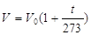 Опыты Гей-Люссака и других обнаружили замечательный результат. Оказалось, что коэффициент объемного расширения у всех газов одинаков (точнее, почти одинаков) и равняется (1/273)град-1= =0,00366град-1. Таким образом, при нагревании при постоянном давлении на1° объем некоторой массы газа увеличивается на 1/273 того объема, который эта масса газа занимала при 0°С (закон Гей-Люссака). Как видно, коэффициент расширения газов совпадает с их термическим коэффициентом давления. Следует отметить, что тепловое расширение газов весьма значительно, так что объем газа V0 при 0°С заметно отличается от объема при иной, например при комнатной, температуре. Поэтому, как уже упоминалось, в случае газов нельзя без заметной ошибки заменить в формуле (4) объем V0 объемом V. В соответствии с этим формуле расширения для газов удобно придать следующий вид. За начальный объем примем объем V0 при температуре 0°С. В таком случае приращение температуры газа t равно температуре, отсчитанной по шкале Цельсия t. Следовательно, коэффициент объемного расширения