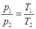 где e — средняя кинетическая энергия одной молекулы. Обозначим давление газа при температурах Т1 и Т2 буквами р1 и р2 а средние кинетические энергии молекул при этих температурах e1 и e2. В таком случае