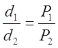 та. Возьмем пример. Пусть давление данной-массы газа при объеме 1 м3 равно 3,6 кг/см2. На основании закона, Бойля — Мариотта рассчитаем, что при объеме, равном 2 м3, давление равно 3,6*0,5 кг/см2=1,8кг/см2. Продолжая такие расчеты,, получим следующую табличку: V (в м3) 1 2 3 4 5 6 P (в кг1см2) 3,6 1,8 1,2 0,9 0,72 0,6 Нанося эти данные на чертеж в виде точек, абсциссами которых являются значения V, а ординатами — соответствующие значения Р, получим кривую линию— график изотермического процесса в газе (рисунок выше). Зависимость между плотностью газа и его давлением. Вспомним, что плотностью вещества называется масса, заключенная в единице объема. Если мы как-нибудь изменим объем данной массы газа, то изменится и плотность газа. Если, например, мы уменьшим объем газа в пять раз, то плотность газа увеличится в пять раз. При этом увеличится и давление газа; если температура не изменилась, то, как показывает закон Бойля — Мариотта, давление увеличится тоже в пять раз. Из этого примера видно, что при изотермическом процессе давление газа изменяется прямо пропорционально его плотности. Обозначив плотности газа при давлениях P1 и P2 буквами d1 иd2, можем написать: