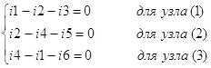 Рисунок 6. Узлы электрической цепи. Составим уравнения по первому закону Кирхгофа: