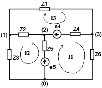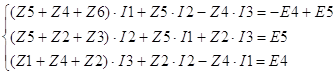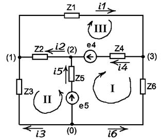 Рисунок 5. Положительные направления контурных токов. Составим систему уравнений по второму закону Кирхгофа, учитывая действующие значения ЭДС: