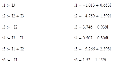 Задав направления токов, как и в решении по законам Кирхгофа (см. рисунок 4), получили следующие значения токов: