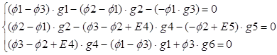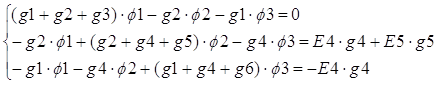 Где: gk=1/Zk - проводимость, k = 0…6. Подставив токи в уравнения составленные по первому закону Кирхгофа, получили систему уравнений: