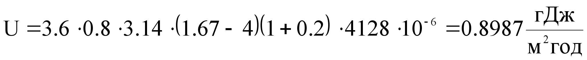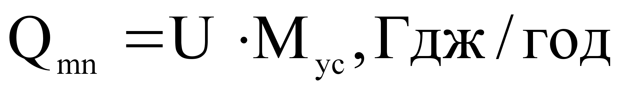 U – удельные ежегодные потери тепла, отнесенные к 1м2 условной материальной характеристики тепловой сети, ГДж/(м2 год);