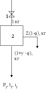 Рисунок 6. Схема РОУ 1 – редукционный охладитель 2 – охладитель