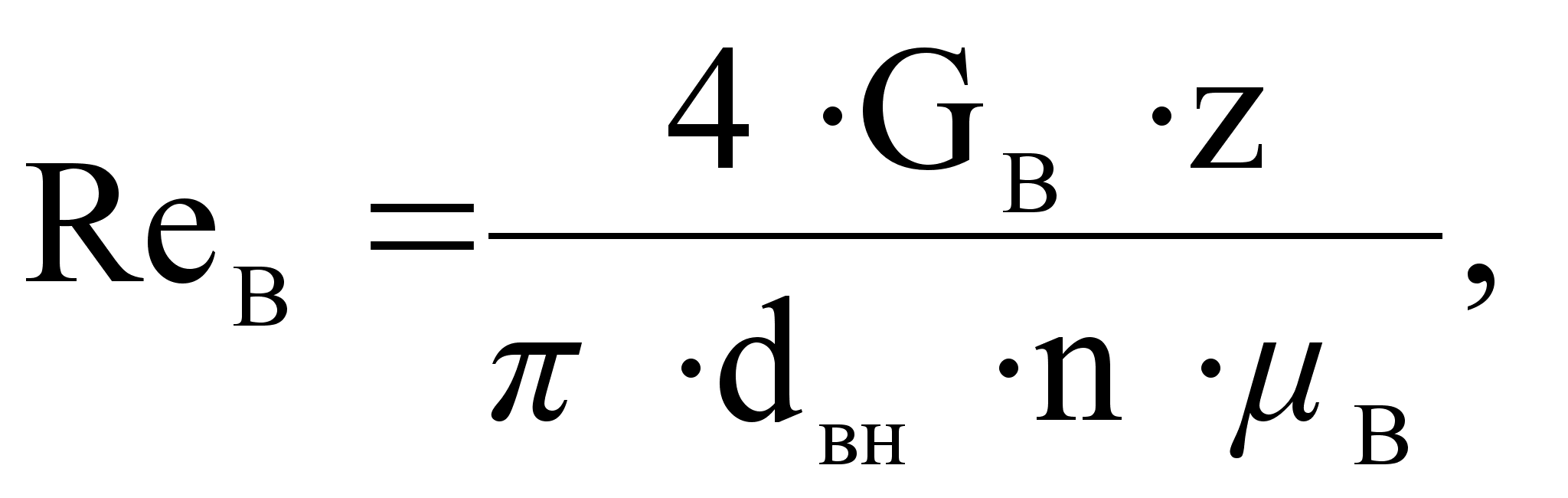 число ходов: z = 2 общее число труб: n = 1658 штук длина теплообменной трубы: L=6000мм поверхность теплообмена: F = 625м2. Определяется действительное число Reв :