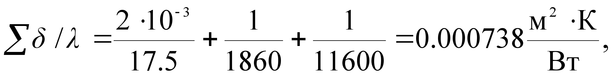 Сумма термических сопротивлений стенки труб из нержавеющей стали и загрязнений со стороны воды и пара равна:
