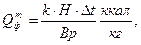 (5.7) где Qpp, q3, q4 – по данным пункта 3, q6 – в данном случае не учитывается. Количество тепла вносимое в топку с воздухом: Qв = Qгв + Qxв = (αт'' - Δαт - Δαпл)∙Iгво + (Δαт + Δαпл)∙Iхво, (5.8) где Iгво и Iхво – энтальпии теоретических объемов воздуха соответственно горячего и холодного: I0гв = 636 ккал/кг; I0хв = 95 ккал/кг. Присосы из табл. 1.1. αпл = 0.05 – присос в топку (из [2, табл.2.3]). Qв = (1.1 - 0.05) · 636 + 0,05· 95 = 672,5 ккал/кг. Подставляя все данные в (5.7) получаем: Qт = 9548,44*(100 – 0,5)/100 + 672,5 = 9567,88 ккал/кг Полезное