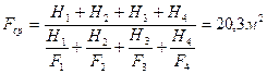 Площади живых сечений для прохода газов на входе и выходе определяются по формулам F1’ = a’*b – z1*d*lпр = 4,125*5,78 – 64*0,042*3,425 =14,6 м2 F1’’ = a’’*b – z1*d*lпр = 3,25*5,78 – 64*0,042*2,5 = 12,8 м2 F1’ = a’*b – z2*d*lпр = 3,6*5,78 – 64*0,042*3,425 = 11,6 м2 F1’’ = a’’*b – z2*d*lпр = 2,7*5,78 – 64*0,042*2,5 = 8,9 м2. Усредняя (так как F1’ и F1" отличаются менее чем на 25%), получаем: