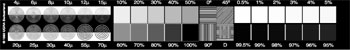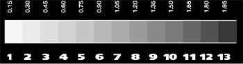 Рис. 1. Шкала контролю копіювального шару При оперативному виробництві (наприклад, газетному) чи недостачі копіювальних рам визначальним може виявитися висока світлочутливість, тобто швидкість, за якої пластина може бути проэкспонирована. Якщо в пластини висока світлочутливість, то час її експонування нижче, і отже, друковану форму можна виготовити швидше. Якщо друкарня в основному друкує высоколиниатурные роботи з легкими чи тлами стохастическим растром, для неї головним стає гарна здатність пластин, що дозволяє. Утім, дозволу, як і пам'яті в комп'ютера, ніколи не буває занадто багато. Про цю корисну властивість варто поговорити окремо. Для друкування невеликих тиражів важливою умовою стає час (швидкість) виходу друкованої машини на баланс фарба-вода, і отже, дуже важливо як швидко з конкретною пластиною машина на цей баланс виходить. РР1 фірми “Polychrome POAP” – це монометалева, заздалегідь очутливлена позитивна офсетна пластина на AL основі. Підготовка поверхні основи включає електрохімічне зерніння з оксидуванням та наповненням оксидної плівки, створення спец гідрофільного підшару.