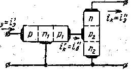 т. е. обратный ток. коллектора структуры р-п-р-п в (B’'0+1) раз превосходит обратный ток одиночного перехода. Это одна из особенностей структуры р-п-р-п. Так как выходным электродом условного транзистора п-р-п является его эмиттер, а коллектор подключен к заземленной точке, то можно считать, что условный транзистор включен по схеме с общим коллектором. Входным электродом условного транзистора является его база, т. е. средняя р-область. Для транзистора, включенного по схеме с общим коллектором, усиление по току как отношение изменения выходного тока к вызвавшему его изменению входного тока будет равно