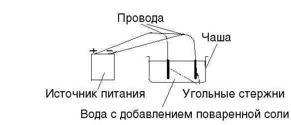 рис.1 Разложение воды электрическим током