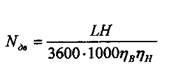 где а и b - стороны воздуховода. Напор Н вентилятора должен быть достаточным для компенсации потерь давления Р и создания некоторого динамического давления Рд на выходе воздуха из вентиляционной сети, т.е. Н==Р+Рд. Величина Рд=рVр2/2 где Vp -допустимая скорость воздушной струи в рабочей зоне (м/с). По величинам L и Н, пользуясь специальными графиками, подбирают нужный вентилятор, стремясь к тому, чтобы КПД его был максимальным. Мощность электродвигателя (на валу) Мдв (в кВт) для привода вентилятора: