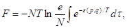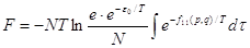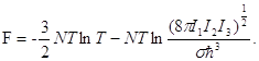 и T в показателе подынтегрального выражения сократится. Преобразование же дифференциалов этих переменных, входящих в dt, даст множитель Tl/2, который выносится за знак интеграла. Интегрирование по колебательным координатам q производится по той области их значений, которая соответствует колебаниям атомов внутри молекулы. Поскольку, однако, подынтегральная функция быстро уменьшается с увеличением q, то интегрирование можно распространить на всю область от -¥ до +¥, как и для всех импульсов. Сделанная нами замена переменных не изменит тогда пределов интегрирования, и весь интеграл будет некоторой не зависящей от температуры постоянной. Учитывая также, что интегрирование по координатам центра инерции молекулы дает занимаемый газом объем V, получим в результате для свободной энергии выражение вида