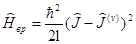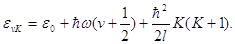 Искомая энергия есть среднее значение Hвр. Члены в (3.5), содержащие квадраты компонент J, дают чисто вращательную энергию. Члены, содержащие квадраты компонент J(v), дают не зависящие от вращательных квантовых чисел, постоянные; их можно опустить. Члены же, содержащие произведения компонент J и J(0), представляют собой интересующий нас здесь эффект взаимодействия колебаний молекулы с ее вращением; его называют кориолисовым взаимодействием (имея в виду его соответствие кориолисовым силам в классической механике). При усреднении этих членов надо иметь в виду, что средние значения поперечных (x, h) компонент колебательного момента равны нулю. Поэтому для среднего значения энергии кориолисового взаимодействия получаем: