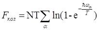 где s=1 для несимметричной молекулы (например, NNO) и s=2 для молекулы, симметричной относительно своей середины (например, ОСО). Колебательная часть термодинамических величин газа становится существенной при значительно более высоких температурах, чем вращательная, потому что интервалы колебательной структуры термов велики по сравнению с интервалами вращательной структуры. Мы будем считать, однако, температуру большой лишь настолько, чтобы были возбуждены в основном не слишком высокие колебательные уровни. Тогда колебания являются малыми (а потому и гармоническими), и уровни энергии определяются обычным выражением ħw(u + 1/2). Число колебательных степеней свободы определяет число так называемых нормальных колебаний молекулы, каждому из которых соответствует своя частота wa (индекс a нумерует нормальные колебания). Надо иметь в виду, что некоторые из частот wa могут совпадать друг с другом; в таких случаях говорят о кратной частоте. Вычисление колебательной статистической суммы Zкол производится элементарно. Вследствие очень быстрой сходимости ряда суммирование можно формально распространить до u=¥. Условимся отсчитывать энергию молекулы от наиболее низкого (u = 0) колебательного уровня, т. е. включаем ħw/2 в постоянную e0 в