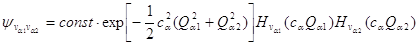 В квадратных скобках стоит определенный полином, из которого мы выписали только старший член. la есть целое число, могущее принимать va + 1 различных значений: la = va, va — 2, va — 4, ..., — va. Нормальные координаты Qa1, Qa2 поперечного колебания представляют собой два взаимно перпендикулярных смещения от оси молекулы. При повороте вокруг этой оси на угол j старший