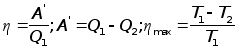 A’-работа совершенная системой А -работа внешних сил над системой Q1-получено от нагревателя Q2-отдано холодильнику теплообмен