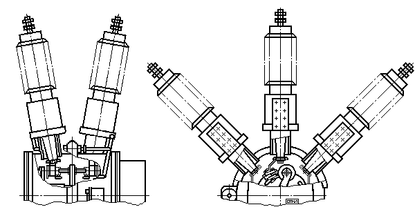- катушка. Рис. 6, б ГЛАВА СЕДЬМАЯ ПРАВИЛА МОНТАЖА И ОБСЛУЖИВАНИЯ 7.1. Перед вскрытием упаковки выключателя необходимо убедиться в её исправности. При вскрытии упаковки принять меры предосторожности, чтобы не повредить изоляционную часть вводов и стекло сигнализатора давления. 7.2. После вскрытия упаковки произвести внешний осмотр выключателя. На выключателе не должно быть повреждений и следов коррозии. Проверить комплектность согласно паспорту. По результатам внешнего осмотра выключателя и проверки комплектности составить акт. 7.3. Собственно выключатель при монтаже поднимать за пластины, находящиеся между вводами выключателя. Привод поднимать за скобы, приваренные к крышке шкафа. 7.4. Маркировочный номер шкафа привода должен совпадать с номером выключателя, указанным на табличке технических данных. 7.5. Рабочее напряжение, токовая нагрузка и токи короткого замыкания выключателей не должны превышать паспортных значений. 7.6. На предприятии-изготовителе выключатель отвакуумирован и заполнен элегазом до избыточного давления в соответствии с документацией. Перед вводом в эксплуатацию, необходимо снять показания индикатора давления. Если избыточное давление ниже 0,4 МПа, выключатель в эксплуатацию не вводить, вызвать представителя предприятия-изготовителя. 7.7. Перед разборкой выключателя, необходимо выпустить из бака элегаз в соответствии с указаниями приведёнными в технической документации. 7.8. Рекомендуется для проведения работ по ревизии или ремонту выключателя вызывать представителя предприятия-изготовителя. 7.9. Ревизия или ремонт выключателя, связанные с вскрытием бака, должны проводиться в специальных помещениях. Все эти помещения должны быть изолированы от улицы и других помещений (в том числе и друг от друга). Они должны быть особо чистыми. Должны быть приняты меры, исключающие попадания пыли. Стены и потолок должны быть окрашены пыленеобразующей краской. Уборка помещений должна производиться вакуумным способом. Должно быть обеспеченно хорошее естественное либо электрическое освещение. Должно быть предусмотрено наличие переносных ламп на напряжение 12 В с мощностью не ниже 40 Вт. 7.10. В части требований безопасности эксплуатация выключателя должна осуществляться в соответствии с требованиями ГОСТ 12.2.007.3-75, "Правилами технической эксплуатации электроустановок потребителей", "Правилами техники безопасности при эксплуатации электроустановок потребителей". ЗАКЛЮЧЕНИЕ В качестве заключения мне бы хотелось отметить основные достоинства выключателей серии ВГБ-35, такие как: • Полная заводская готовность, обеспечивающая простой и быстрый монтаж (выключатель приходит заказчику полностью отрегулированным, заполненным элегазом до рабочего давления и не требует при монтаже и наладке дозаправки элегазом); • Небольшие масса и габариты, отсутствие дополнительных динамических нагрузок на фундамент при коммутации токов короткого замыкания (возможна установка на одной опоре с облегчённым фундаментом); • Экологическая чистота эксплуатации; • Способность отключать ёмкостные токи до 630 А без повторных пробоев; • Минимум обслуживания, т. к. большие механический и коммутационный ресурсы обеспечивают работу без ремонта с вскрытием бака в течение всего срока службы выключателя; • Высокая надёжность (даже при падении из