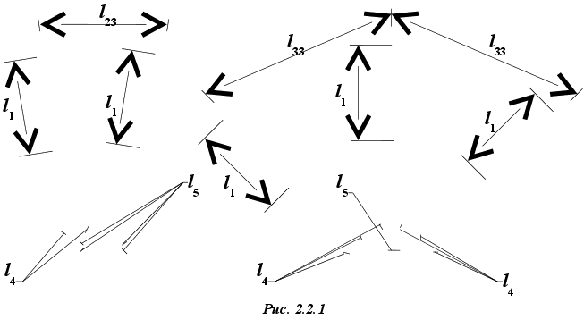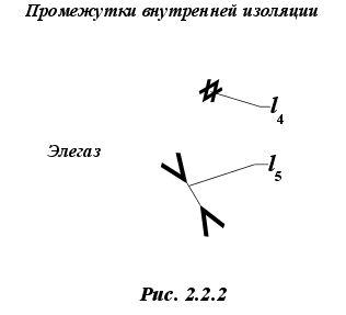 (кратчайшее расстояние от фазы до заземленного бака); l2 - промежуток вида «игла-игла», находящийся в атмосферном воздухе (кратчайшее расстояние между контактами одной фазы); l3 - промежуток вида «игла-игла», находящийся в атмосферном воздухе (кратчайшее расстояние между контактами двух фаз); l4 - промежуток вида «игла-плоскость», находящийся в элегазе (кратчайшее расстояние от экрана фазы до заземленного бака); l5 - промежуток вида «игла-плоскость», находящийся в элегазе (кратчайшее расстояние между подвижным контактом фазы и катушкой ДУ).