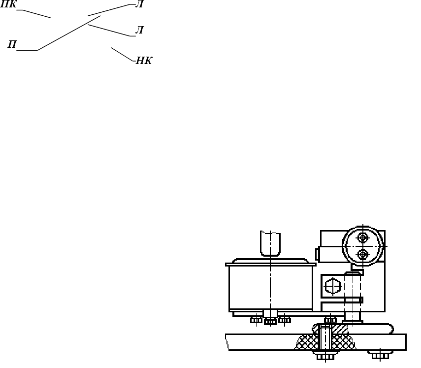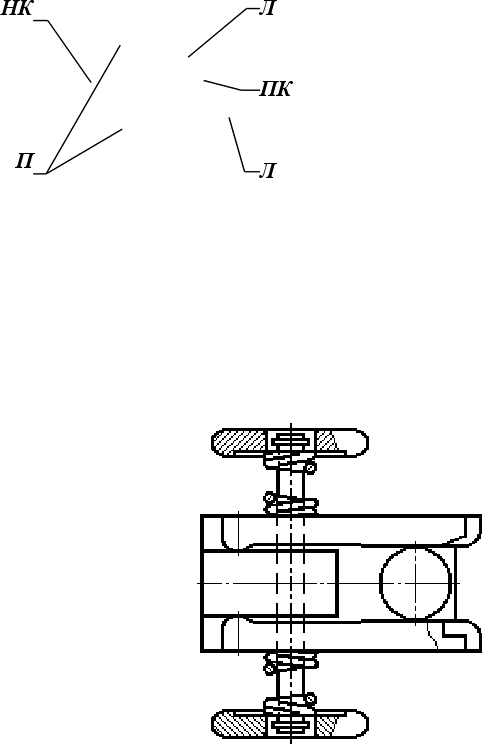 Где L - длина участка с однородной изоляцией, м; S - периметр токоведущего стержня на участке однородности, 10-6 м, F - сечение токопровода на участке однородности, 10-6 м2; 0 - удельное сопротивление материала токопровода при 0С, Ом.м.10-8; - коэффициент теплопроводности материала токопровода на участке при 0С, Вт/(м.С); - температурный коэффициент сопротивления материала токопровода, 10-3 К-1; P -абсолютное давление слоёв изоляции, МПа; 1..4 - слой однородной изоляции на участке; r2/r1..r5/r4 - внешний/внутренний диаметры слоёв изоляции. I..VIII - участки однородности токоведущей системы. 3.9. РЕЗУЛЬТАТЫ ТЕПЛОВОГО РАСЧЁТА Результаты расчёта приведены в приложении. ГЛАВА ЧЕТВЁРТАЯ РАСЧЁТ КОНТАКТНОГО УЗЛА Расчёт параметров контактной системы при номинальном токе сводится к определению необходимого контактного нажатия при заданном значении тока и максимальной температуре площадки контактирования применительно к разрабатываемой конструкции коммутационного аппарата. 4.1. ТИП КОНТАКТНОЙ СИСТЕМЫ ВГБ-35 Контакты ВГБ-35 относятся к ламельным (пальцевым) контактам без гибких связей (см. рис. 4.1, а; 4.1, б), в которых подвижная контакт-деталь (ПК), выполненная в виде стержня входит в неподвижную контакт-деталь (НК). Контактное нажатие создаётся двумя пружинами (П). Общее количество ламелей (Л), расположенных на НК - четыре (две сверху, две снизу), причём одна пара (верхняя и нижняя Л) имеет больший горизонтальный размер, чем другая. Эта же пара снабжена дугостойкими металлокерамическими напайками. ПК соответственно тоже снабжены наконечниками из дугостоикой металлокерамики. Контактный узел ВГБ-35