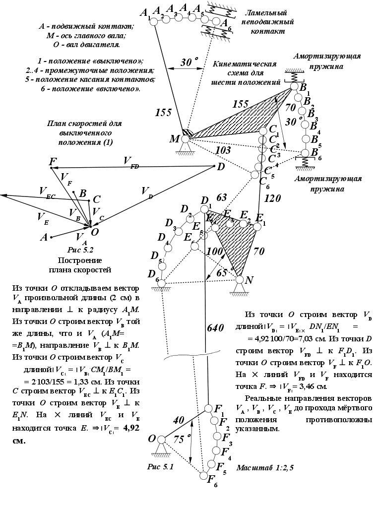Рис. 4.1, а Рис. 4.1, б ПК-подвижный контакт; НК-неподвижный контакт; П-пружина; Л-ламель. 4.2. РАСЧЁТ ПАРАМЕТРОВ КОНТАКТНОЙ СИСТЕМЫ ПРИ НОМИНАЛЬНОМ ТОКЕ 4.2.1. ИСХОДНЫЕ ДАННЫЕ ДЛЯ РАСЧЁТА КОНТАКТНОГО НАЖАТИЯ Номинальный ток выключателя Iном = 630 А; Максимальная температура контактов из меди и медных сплавов с покрытием серебром в элегазе {6} доп = 105C; Превышение температуры контакта над температурой удалённых точек = 5 К; Количество ламелей m = 4; Количество точек касания для линейного контакта n = 2; Удельное сопротивление меди при 0C {6} 0=1,62.10-8 Ом.м; Температурный коэффициент электрического сопротивления меди при 0C {6} =0,00433 K-1; Теплопроводность меди при 0C {6} 0=388 Вт/(м.К); Микротвёрдость меди при 0C {6} H=730 МПа; Температура плавления меди {6} 0 = 1083 С; Температурный коэффициент электрического сопротивления меди при 0C {6} = 0,00433 K-1; Коэффициент шероховатости поверхности м =1; Коэффициент неравномерности по точкам касания kн = 1,11,3. Расчёту подлежат: = 0.(1+cu.доп) = 1,62.10-8.(1 + 0,00433.105) = 2,357.10-8 Ом.м; = 0.(1 - т.доп) = 388.(1 - 1,8.10-4.105) = 381 Вт/(м.К); н = 273 + доп = 273 + 105 = 378 К; пл = 273 + пл = 273 + 1083 = 1356 К; H=H.[1-(н/пл)2/3]/[1-(273/пл)2/3]=730.[1-(378/1356)2/3]/[1-(273/1356)2/3]=638 МПа; 4.2.2. РАСЧЁТ КОНТАКТНОГО НАЖАТИЯ Fк= n.[Iном.kн/(n.m)]2...H/(32..) = 2.[630.1,2/(2.4)]2.2,357.10-8..638.106/(32.381.5) = = 13,841 Н {6, стр. 267, формула (7-13а)}. 4.2.3. РАСЧЁТ КОНТАКТНОГО НАЖАТИЯ ПО ЭЛЛИПТИЧЕСКОЙ ФОРМУЛЕ Fк.элл = [n.(Iном/(n.m).kн)2.kл..м.Hб]/[16.2.(аrccos(Tк/Tм))2] = [2.(630/(2.4).1,2)2.2,357 10-8.3,14159.3,7.108]/[16.3812.(аrccos(378/383))2] = 7,228 H. 4.2.4. РАСЧЁТ КОНТАКТНОГО НАЖАТИЯ ПО СФЕРИЧЕСКОЙ ФОРМУЛЕ Fк.сфр = [n.(Iном/(n.m).kн)2...см]/[32..(Tк - Tм)] = [2.(630/(2.4).1,2)2.2,357.10-8.3,1415 3,7.108]/[32.381.(387 - 383)] = 7,636 H. Усреднённое значение силы контактного нажатия, см. п. 4.2.2 - 4.2.4: Fк = (Fк + Fк.элл + Fк.сфр)/3 = (13,841 + 7,228 + 7,636)/3 = 9,568 Н. 4.2.5. РАСЧЁТ ПЕРЕХОДНОГО СОПРОТИВЛЕНИЯ КОНТАКТНОГО УЗЛА Производится по формуле из {6, стр. 264}: Rпер = /(0,102.Fк)m, где Rпер - переходное сопротивление контактного соединения (КД); - коэффициент, учитывающий физические свойства металла КД, состояние рабочей поверхности (степень её окисления) и вид контакта; Fк - контактное нажатие, Н; m - коэффициент, полученный опытным путём для контактов разного вида. Для ВГБ-35 переходное сопротивление КД составляет: Rпер = /(0,102.Fк)m = 0,14.10-3/(0,102.9,568)0,7 = 1,424.10-4 Ом. 4.2.6. РАСЧЁТ ТЕПЛОВОГО ПОТОКА КОНТАКТНОЙ СИСТЕМЫ Тепловой поток, приходящийся на весь контактный узел определяем по формуле Qк = Rпер.n.m.[Iном.kн/(n.m)]2 = 1,424.10-4.2.4.[630.1,2/(2.4)2] = 10,173 Вт. Значение теплового потока КУ используется в программе {5}. Т. к. в конструкции ВГБ-35 предусмотрено шесть контактных узлов, то общий тепловой поток, выделяющийся в бак, заполненный элегазом, при протекании номинального тока (включенное положение) составляет 6.10,173 = 61,038 Вт. С учётом тепловых потерь в подвижных контактах, тепловой поток, выделяющийся в бак составляет 61,038 + 10,343 = = 71,381 Вт (см. п. 3.4.). 4.2.7. РАСЧЁТ МАКСИМАЛЬНОЙ ТЕМПЕРАТУРЫ ТОЧКИ КАСАНИЯ КОНТАКТОВ H=H.[1-(н/пл)2/3]/[1-(273/пл)2/3]=730.[1-(1000/1356)2/3]/[1-(273/1356)2/3]=204 МПа; Tм=То/[cos((Iэфф(1)/(m.n).kн..A.H)/(4..Fк))]=378/[cos((18,75.103/(4.2).1,2.3,14.2,310-8.204.106)/ /(4.381.9,568))]=??? 4.2.8. РАСЧЁТ СВАРИВАЮЩЕГО ТОКА Iпл = mсв.(0,102.n.m.Fк)nсв.103 = 2,0.(0,102.2.4.7.432)0,5.103 = 13,931 кА. См. {6, стр. 289}. Параметры mсв и mсв взяты из {6, таблица 7-7}. 4.3. РАСЧЁТ ПАРАМЕТРОВ КОНТАКТНОЙ СИСТЕМЫ ПРОГРАММОЙ "CONT" {6} 4.3.1. ИСХОДНЫЕ ДАННЫЕ Исходные данные для расчёта взяты из {1, таблица П.7.}, {3}. Материал контактной пары медь/медь; Номинальный ток 630 А; Номинальный ток отключения 12500 А; Допустимая температура в номинальном режиме 105+273=378 К; Допустимая температура при КЗ 250+273=523 К; Температу