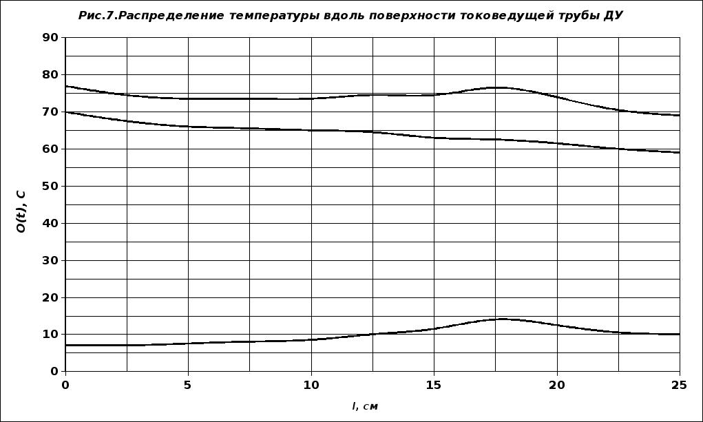 Q1 – Q2 – Q3 = 0; - ij + Q1.Rj’ + Q3.Rj’’ + yj = 0; - ij + Q3.Rj’’ + Q2.Rj’ + ik = 0. Решая систему уравнений относительно Rj’ и Rj’’, можно получить выражения для тепловых сопротивлений участков конечной длины Rj’ = (ch(b.L) – 1)/(.F.b.sh(b.L)); Rj’’ = 1/(.F.b.sh(b.L)). Расчёт тепловых сопротивлений Rj’ и Rj’’, установившихся температур yj участков системы сведём в таблицу 6. Влияние контакта учитывается дополнительным подводом тепла Pк = Iном2.Rк, где Rк – переходное сопротивление контакта. Pк = 20002.7,559.10-6 = 30,236 Вт; Тепловая схема замещения токоведущей системы представлена в приложении. Для расчёта распределения температуры по длине токопровода методом тепловых схем используется программный пакет, разработанный на кафедре ТВН. Таблица 6. Исходные данные для программного теплового расчёта