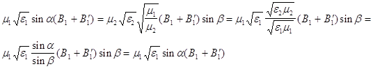 таким образом мы действительно нашли точное решение уравнений (2) , удовлетворяющее всем начальным условиям . В случае p-волны имеем следующие формулы Френеля для отражения и преломления (из (9) и (10))