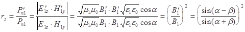 (точнее плотности потока энергий ) падающей и отраженной ТМ и ТЕ волн и