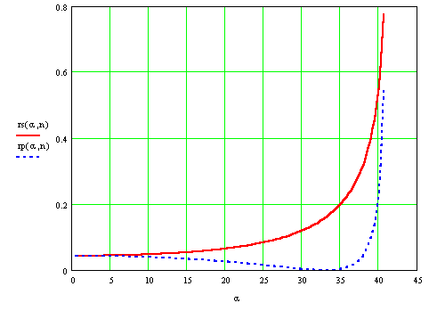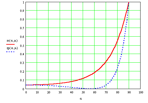 Это есть угол Брюстера ( При Итак , в обоих случаях Полученные зависимости иллюстрируются следующими графиками : на первом показана зависимость