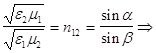 диэлектрические среды 1 и 2 , с электрической и магнитной проницаемостью