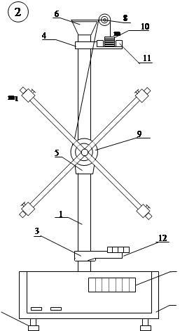 Дар асоси 2-и дастгох 7 шинонда шудаанд, ки бо ёрии онхо мавкейи шокули (вертикали)-и сутунпояро танзим додан имконпазир аст. Дар хамин асос барои чен ардани тули вакти афтиши платформаю борчахо миллисониясанчи 13 чойгир мебшад. Руяи пеши асос чузхои идоравии зеринро дарбар гирифтааст: СЕТЬ – пахши ин клавиша (тугма) Баьди васли дастгох ба шабакаи шахри медарорад ва чарогакхои дадтчмкхои Фотоелектрирофурузон мегардонад . СБРОС-пахши ин тугма ададхои индикатор (нишондиханда) –и миллисиониясанчро ба сифр (нуль) – х о Табдил медихад (агарто ин дам дар он ададхои дигар сабт ефта бошад). ПУСК- тугмаи идораи электро-магнит, пахши он электро-магнитро рахо дода импулсе меангезад, ки ба андозагирии вакт ичозат мефармояду озод кардани тугма электромагнитро ба кор андохта, харакати раккосакро кат месозад. Тамоми система, чи тавре ки зикр ёфт, бо тасироти кувваи тарангии расмон ба харакати чархзани медарояд ва моменти гардишовари он мувофики формулаи M = T'ri (3)
