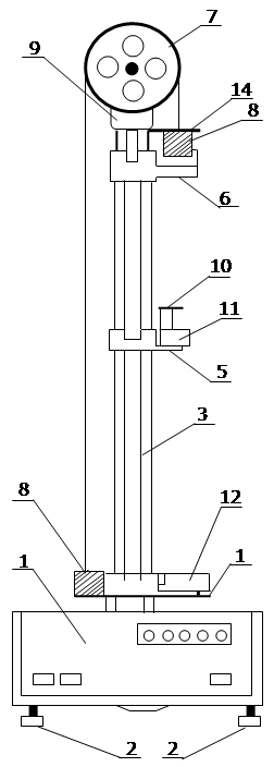 Тафсири дастгох ва назаряи метод Дастгохе, ки асосашро мошини Атвуд ташкил медихад, аз такягохи 1-и бо чор пояи баландиро танзимдихандаи 2 ва дар он