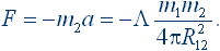 Отсутствие в формуле (4) величины диэлектрической проницаемости ε обязательно. В противном случае мы имели бы возможность экранирования всеобщего универсального явления всемирного тяготения, а именно, процесса поглощения (впитывания) объема энергетической среды в массу объекта. Таким образом, формула для силы взаимодействия двух физических объектов произвольной массы m1 и m2 должна иметь следующий вид: F = Λ1/2m1Λ1/2m2 / (4πR212) – из условия, что общий виртуальный заряд, образующийся на массе m, равен n=m/Mpl элементарных виртуальных зарядов qv, т.е. Λ1/2Mplm / Mpl = Λ1/2m. Подтверждается правильность выдвинутого ранее тезиса о том, что в случае тяготения мы имеем дело с особым видом электромагнетизма или с особой формой его взаимодействия, являющейся, возможно, первичной, изначальной формой всех взаимодействий, началом начал. Полнейшее отсутствие какой бы то ни было возможности влияния на среду и на явление стягивания ее объема в объекты реальной физической массы наипервейшее условие этого начала начал. Итак мы установили, что величина gv=Λ1/2=qv/Mpl должна являться удельным элементарным виртуальным электрическим зарядом gv = │±Λ1/2│ = 9,154·10–4 [ед. СГСЭq/г]. На этом основании рассматриваемое физикой безразмерное соотношение сил ньютоновского Fn и кулоновского Fk притяжения электрона к протону Fn / Fk = εΛmemp / (4πe2) = 4·10–40 необходимо трактовать только как сравнение интенсивности электромагнитного взаимодействия зарядов, возникающих на одинаковых массах в виртуальном и реальном электромагнитных полях, т.е. Fn / Fk = εΛ1/2meΛ1/2mp / (4πgemegpmp), где gp – удельный элементарный заряд протона, а mp – его масса. При этом величина виртуального заряда, образующегося на массе электрона (qve) должна быть равна сумме n=me/Mpl элементарных виртуальных зарядов qve=Λ1/2Mpl, где n должно быть целым числом. Но отношение массы электрона к планковской массе является дробью значительно меньшей единицы. Это не дает возможности образования на его массе элементарного виртуального заряда. То же самое относится и к протону. На этом основании рассматриваемое соотношение Fn/Fk должно быть вообще признано неправомочным, так как не имеет физического смысла и не может быть реализовано. Однако этот факт определяет необходимость обязательного указания того, что формула закона всемирного тяготения для силы взаимодействия двух масс F = –Λm1m2r12 / (4πr312) справедлива лишь для объектов с массами m≥Mpl каждый. Итак, мы видим, что силы тяготения могут быть выражены в форме Кулоновского взаимодействия. Это свидетельствует о наличии единого, универсального начала для всех видов взаимодействий, определяющего все их дальнейшие свойства, зависимости и закономерности. Таким образом, постоянная тяготения Λ является сложной величиной и представляет собой не только удельное ускорение потока стягивания объема среды в объекты реальной физической массы. Являясь квадратом удельного виртуального элементарного заряда Λ=(±Λ1/2)2=(gv)2 она определяет наинизший энергетический уровень натяжения объема среды между бесконечно удаленными в космическом пространстве объектами реальной физической массы. Подтверждением этого служит обобщенный Ньютоном третий закон Кеплера, выражающийся в виде: