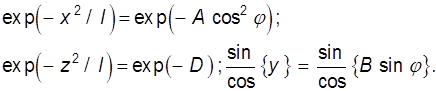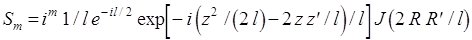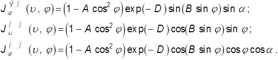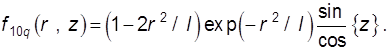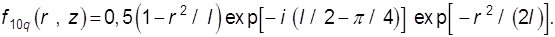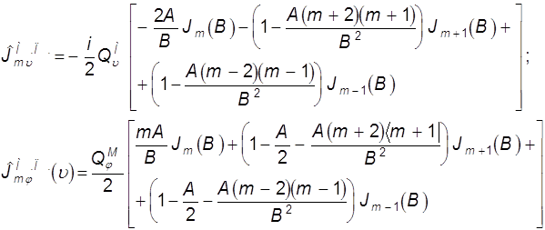 Для следующего типа колебаний «10 q» выражения для первичных токов имеют тот же вид, но A1=3A, D1=3D, B1=B. Далее поля разлагаются в ряд Фурье. Поскольку тело невелико, можно ограничиться небольшим числом гармоник. Используя формулы для коэффициентов ряда Фурье и интегральное представление функции Бесселя (9.21), получаем выражения для гармоник падающих токов. При этом в силу симметрии в случае синфазных токов на зеркалах присутствуют только нечетные гармоники, что соответствует максимуму поля резонатора в области диска:
