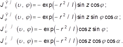 Переход к отрицательным индексам происходит так же, как и ранее. После вычисления первичных токов используется алгоритм решения задачи возбуждения тела вращения, основанный на уравнении (3.85). Результат получается в виде распределения азимутальных гармоник плотностей эквивалентных токов на поверхности диэлектрика. Далее по этому распределению