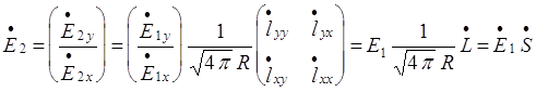 называют матрицей рассеяния. В данной записи матрица рассеяния образована поляризационными составляющими эффективной длины цели. В дальнейшем будем рассматривать в качестве основной характеристики цели матрицу эффективной длины