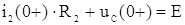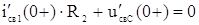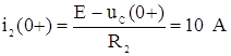 i1(0+) = i2(0+) + i3(0+) = 14 А. Напряжение на сопротивлении R2 равно Е – uC(0+) = 100 В, напряжение на индуктивности равно напряжению на емкости.