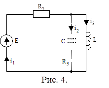Напряжение на емкости равно нулю [uC(0–) = 0]. 2. Определим токи и напряжения непосредственно после коммутации для момента времени t = 0+. Расчетная схема приведена на рис. 3. По первому закону коммутации iL(0–) = iL(0+), т.е. ток i3(0+) = 4 А. По второму закону коммутации uC(0–) = uC(0+) = 0.