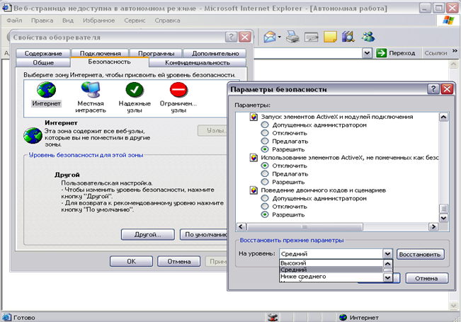 Настройка уровня безопасности Internet Explorer Вернёмся на минутку к настройкам Internet Explorer, - а именно в меню Сервис/ Свойства обозревателя/ Безопасность. Internet Explorer предлагает нам несколько уровней безопасности. Помимо стандартного уровня защиты (зона Интернет) мы можем усилить (зона Ограничить) или ослабить свою бдительность (зона Надёжные узлы). Нажав кнопку Другой, мы можем вручную отрегулировать защиту браузера. Впрочем, большая часть скрипт-вирусов распространяется через электронную почту (такие вирусы чаще называют «Интернет-червями»). Пожалуй, ярчайшими представителями этого семейства являются вирусы LoveLetter и Anna Kournikova, атаки которых пришлись на сезон 2001-2002 г. Оба этих вируса использовали один и тот же приём, основанный не только на слабой защите операционной системы, но и на наивности пользователей. Мы помним что переносчиками вирусов в большинстве случаев являются сообщения электронной почты, содержащие вложенные файлы. Помним и то, что вирус может проникнуть в компьютер либо через программы (исполняемые файлы с расширением *.exe, *.com.), либо через документы Microsoft Office. Помним и то, что со стороны картинок или звуковых файлов нам никакая неприятность грозить вроде бы не может. А потому, раскопав нежданно-негаданно в почтовом ящике письмо с прикреплённой к нему (судя по имени файла и расширению) картинкой, тут же радостно её запускаем… И обнаруживаем, под картинкой скрывался вредоносный вирусный «скрипт». Хорошо ещё, что обнаруживаем сразу, а не после того, как вирус успел полностью уничтожить все ваши данные. Хитрость создателей вируса проста – файл, который показался нам картинкой, имел двойное расширение! Например, AnnaKournikova.jpg.vbs Вот именно второе расширение и является истинным типом файла, в то время как первое является просто частью его имени. А поскольку расширение vbs Windows хорошо знакомо, она, не долго думая, прячет его от глаз пользователей, оставляя на экране лишь имя AnnaKournikova.jpg И Windows поступает так со всеми зарегистрированными типами файлов: разрешение отбрасывается а о типе файла должен свидетельствовать значок. На который, увы, мы редко обращаем внимание. Хороша ловушка, но различить её легче лёгкого: фокус с «двойным расширением» не проходит, если мы заранее активируем режим отображения типов файлов. Сделать это можно с помощью меню Свойства папки на Панели управления Windows: щёлкните по этому значку, затем откройте закладку Вид и снимите галочку со строчки Скрывать расширения для зарегистрированных типов файлов. Запомните: в качестве «вложения» в письмо допустимы лишь несколько типов файлов. Относительно безопасны файлы txt, jpg, gif, tif, bmp, mp3, wma. А вот список безусловно опасных типов файлов: