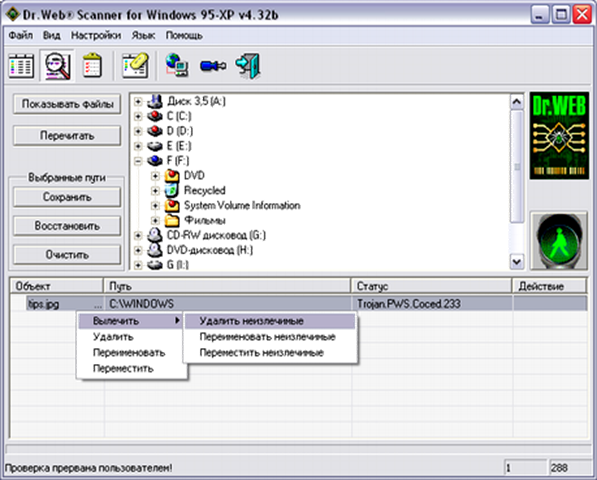 4.2.Dr.web Лет шесть-семь назад, в эпоху DOS, Dr.Web мог с полным правом считаться первым и лучшим среди российских антивирусов. Однако запоздание с переходом на Windows-версию сыграло роковую роль: популярность Dr.Web стала стремительно падать… И лишь относительно недавно, после подорожания AVP (сменившего к тому времени название на KAV), интерес к разработке Игоря Данилова вновь вырос. И оказалось, что этот «вечно второй» продукт в большинстве случаев может предложить не худший уровень защиты, чем его коллега «от Касперского». Антивирусная база Dr.Web меньше, чем у KAV и насчитывает около 71000 записей. Однако создатели уверяют, что на результатах тестирования это не сказывается, поскольку в Dr.Web реализован принципиально иной подход, чем в его коллегах-антивирусах: в программу встроен модуль эвристического анализатора, который позволяет обезвредить не только уже известные программе, но и новые, ещё не опознанные вирусы. В любом случае, малый размер и сравнительно небольшой объём базы не мешают Dr.Web регулярно занимать призовые места в антивирусных «чемпионатах» и сравнительных тестированиях. Кроме того, скорость пополнения баз данных у обоих антивирусов примерно одинакова. А самое главное, Dr.Web работает значительно быстрее своих громоздких конкурентов, а в некоторых случаях – ещё и корректнее. Именно Dr.Web первым из отечественных антивирусов подружился с Windows XP, что и привлекло к нему внимание пользователей.