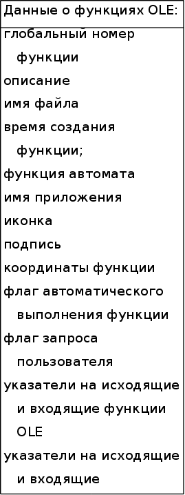 Наиболее объемными являются данные о функциях OLE содержащихся в проекте, состоящие из следующих переменных: