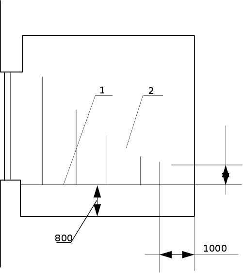 1 -уровень рабочей поверхности (0.8М); 2 -кривая, характеризующая изменение КЕО в плоскости разреза помещения (lH min =2%) Рис. 5.2