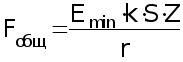 где r - коэффициент использования светового потока, r=0.4; E min - наименьшая освещенность, E min = 200 лк; k - коэффициент запаса, k = 1.5; S-площадь помещения, S= 42 М 2 ; Z- коэффициент перехода от наименьшей к средней освещенности, для светильников равномерного освещения Z=1.1;