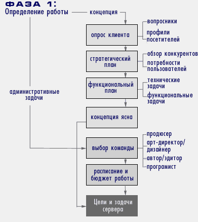 Многие приступают к работе над новым сайтом с выбора цветов, шрифтов, технологий и т.п. Тогда как логичнее начать с анализа проекта, планирования предстоящей работы и поиска ответов на ряд важных вопросов, касающихся будущего сайта. Время, потраченное на сбор и обработку нужной информации, окупится с лихвой, помогая избежать потери денег и энергии в дальнейшем. 1. Вы получили деловое предложение. В первую очередь постарайтесь узнать как можно больше о вашем заказчике, о его фирме; сферу бизнеса, в котором он работает, и занимаемую в ней нишу. 2. Получите у него ответы на следующие вопросы: - Зачем ему нужен сайт? Почему он его создает и какие цели и задачи преследует? - - Желает ли он моментальной отдачи или подготавливает почву для более агрессивного бизнеса в Сети в дальнейшем? - - Что входит в его цели: продать продукцию или сервис, увеличить покупательский рынок, обеспечить поддержку уже проданному товару? - - Возможно, он надеется подняться на уровень конкурентов, которые давно имеют свои ресурсы в Интернет? - - Если бы у него была возможность донести только одну идею до своих пользователей, какой бы она была? - - Какие дальнейшие действия ожидает он от посетителей его Веб-страниц? Обращение за более полной информацией? Визит в магазин или офис, покупка напрямую с сервера? - - Как заказчик измерит успех или неудачу сайта? Как узнать, что сайт получился удачным - понравилось начальнику? Выиграл Сетевые награды? Популярен в среде пользователей? - - Кого он хочет видеть своим посетителем? (Дизайн и содержание сайта должны оправдывать ожидания и удовлетворять потребности пользователя) - - Почему к нему будут приходить? За какой информацией? - - А какую информацию он может предоставить? Одна из распространенных ошибок профессионалов - это убежденность в том, что пользователи достаточно просвещены в вопросах, касающихся деятельности фирмы. Вероятнее всего, это не так. Маркетинг заказчика только выиграет от результатов обучения возможных клиентов. Ваша с ним задача - выбрать из моря информации ту, в которой нуждается посетитель. - - Интересуется ли он привлечением одноразовых посетителей (для счетчика) или надеется превратить случайных прохожих в регулярных пользователей? Лояльность требует частого обновления материалов. 3. Узнайте, кто является конкурентом заказчика. Как выглядят их Интернет ресурсы. Очень важно, чтобы сайт клиента не подражал другим, а представлял уникальный и последовательный в себе имидж. Составьте документ с подробным описанием того, что вы знаете о данной индустрии в Интернете. Сделайте выводы - что работает и что не работает для схожей группы пользователей на других сайтах. Что бы вы могли использовать на сайте заказчика, и что использовать не стоит. 4. Когда вы утвердите профиль будущего посетителя (см. вопросы выше), составьте список возможных требований (например, основной группой пользователей будет молодежь, которая дозванивается в Интернет через слабый модем и терпеть не может ждать загрузки страницы дольше, чем 30 сек.) и пожеланий (они хотели бы иметь возможность обмениваться мнениями на доске или болтать в чате) различных посетительских групп. 4. Следующие, решите вопросы по функциональности ресурса. - Что заказчик находит необходимым для его сайта? К примеру, динамические страницы, генерируемые базой данных, веб-к