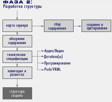 Имея на руках результаты опросов заказчика и профили будущих посетителей, пришло время шевелить мозгами в поисках идей, которые помогут веб-сайту достичь поставленных перед ним задач. Первый ваш шаг - набросок "карты сайта". Это графическая диаграмма, показывающая путь продвижения посетителя по сайту. Ваша карта должна включать в себя каждую его страницу и то, в какой зависимости они находится относительно других страниц и материалов. Очень важно получить "добро" заказчика на "карту", и отметить любые изменения в структуре, такие как удаление или добавление страниц, что может повлиять на бюджет проекта. Планирование контекста происходит в тесном сотрудничестве с заказчиком. Возможно, у него уже есть готовые материалы, другие должны быть модифицированы, переписаны или созданы с нуля. Необходимо четко разграничить обязанности между вами. Кто будет ответственен за что? Если заказчик поставляет весь материал, составьте ему расписание. Передача текстов вечно занимает больше времени, чем мы рассчитываем и часто именно заказчик виновен в растягивании сроков проекта. Определитесь с текстом для каждой страницы до начала работы над дизайном. Навигация сайта будет напрямую зависеть от количества и глубины содержания, а его стиль и тон окажут влияние на визуальный язык композиции. Тактическую сторону технических спецификаций можно отразить в коротком документе, определяющим подход и используемые технологии при кодировании страниц и визуальной разметке. - Будут ли страницы генерироваться "на лету" из датабазы? - - Будут ли использованы Cascading Style Sheets (CSS)? - - Потребуется ли наличие модуля (plug-in) или специального контроля на машине пользователя? - - Под какой минимум необходимо оптимизировать цветовую палитру? - - Вы будете писать код сами или использовать WYSIWYG "Что вижу, то и получаю" эдитор (Dreamweaver, к примеру)? - - Будут ли использованы DHTML, Channels, Push технологии? Затем вы должны определиться с навигацией. Как будет посетитель продвигаться по сайту? Какая связь существует между страницами, куда можно попасть от куда и т.д. Для большинства проектов нет нужды придумывать новые навигационные схемы. Учитесь на сайтах, которые вам нравятся больше всего: проще - лучше. Подгоните существующую удачную модель под нужды своего проекта и используйте ее. Людям необходима возможность легко передвигаться по сайту, только и всего. Дизайн интерфейса.